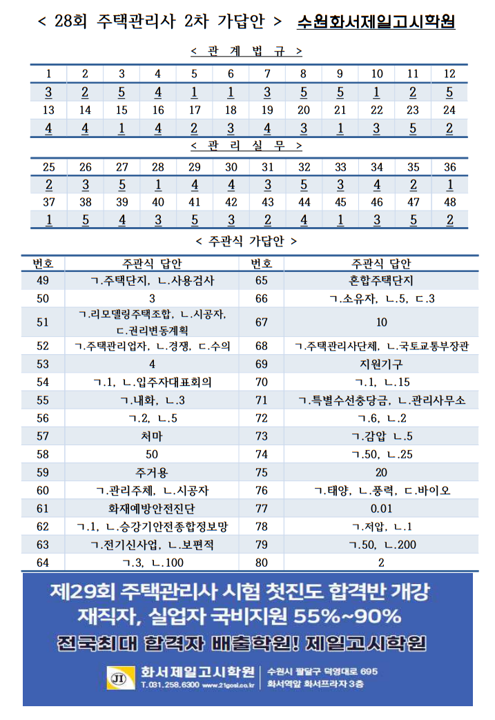 제28회주택관리사 2차시험 잘치르셨죠?
